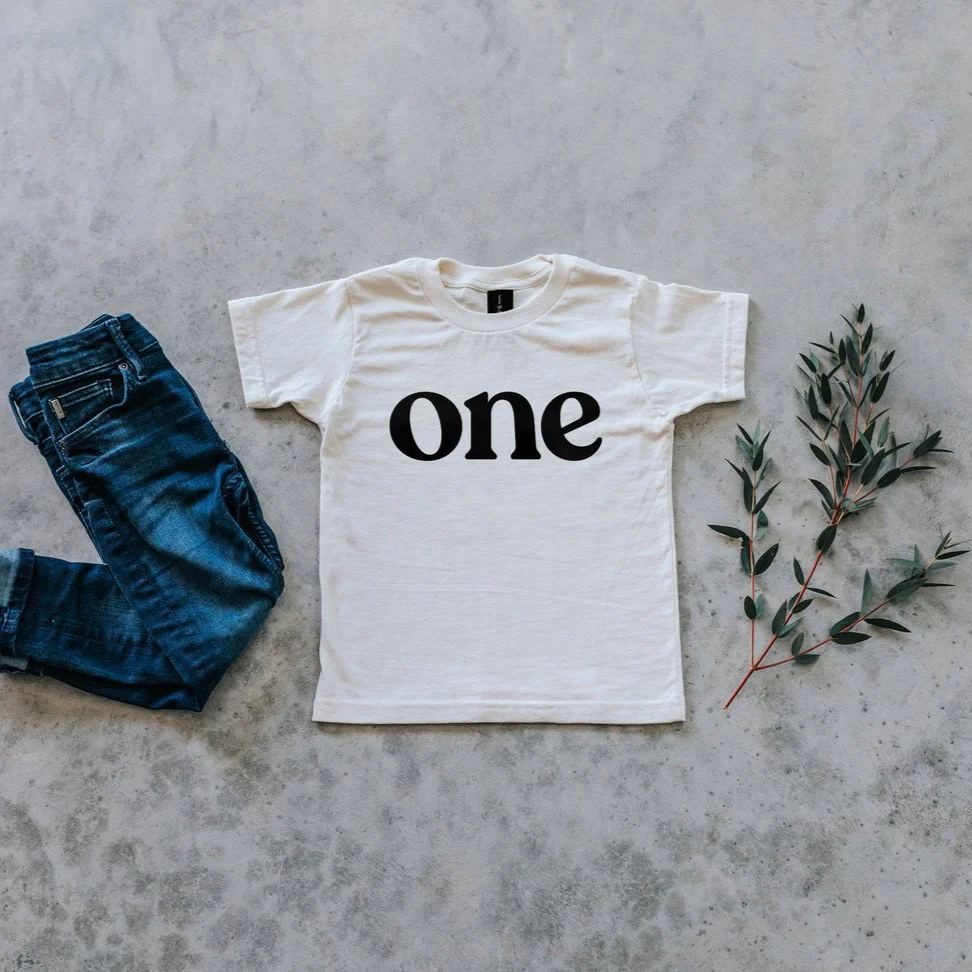 Happy birthday, little "one"! The sweetest first birthday shirt for the big day - and beyond! Featuring a unisex-style modern typeface, this tee was designed with love and screen printed by hand.